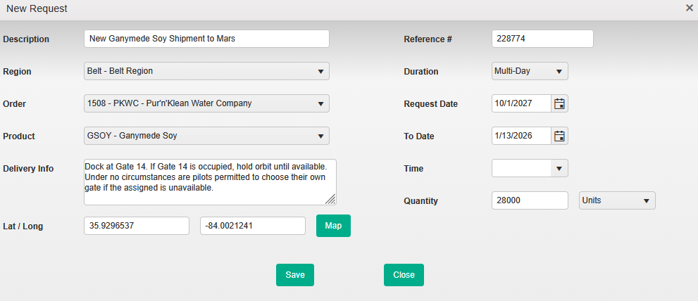 * *Quantity:* The volume of product available for the request. This can be set to either *Units* or *Loads*.