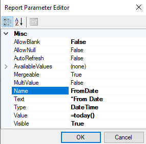 For more information about what the settings here are, check out this Telerik Report Parameters Docs.