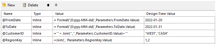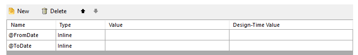 Note: In our example, our Inline Parameters are the @FromDate and @ToDate.