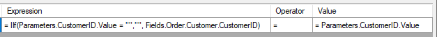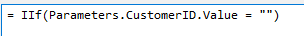 Note: Here, we want the Customer ID to populate if the expression is false (the parameter is not blank).