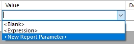 Set up the parameterized value in Value by selecting the drop-down > New Report Parameter (if you have pre-setup your parameter, just select it from the list).