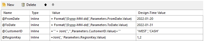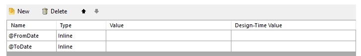 Note: In our example, our Inline Parameters are the @FromDate and @ToDate.