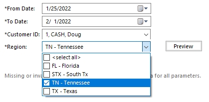 Navigate to the Home tab on the top of the report and click Preview to test your parameters.