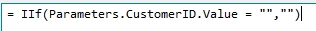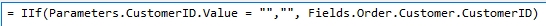 Note: Here, we want the Customer ID to populate if the expression is false (the parameter is not blank).