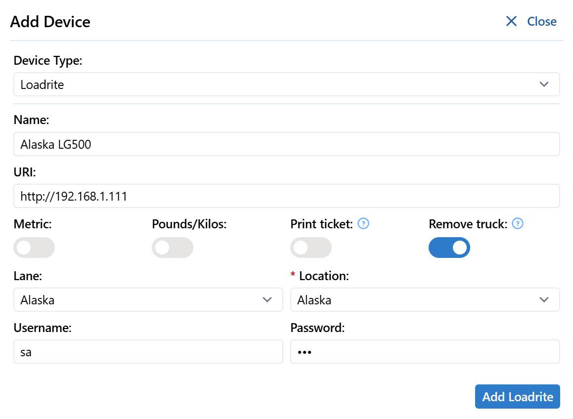 Fast-Weigh's integration with Loadrite in-cab equipment is limited in scope. Please consult with a Fast-Weigh Repersenative to determine if integrating with this hardware is right for you.