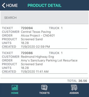Quickly assign an Order to a Truck with a mobile Truck Assignment. Note: The feature is only available if your User Role is not for a Customer, Hauler, or Truck.