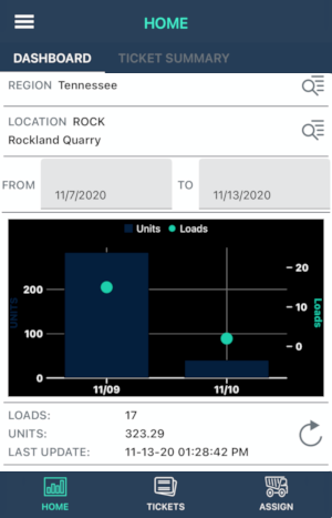 The Mobile Management app can be used to view up-to-date Load and Unit counts by Location, as well as assign Orders to your Trucks.