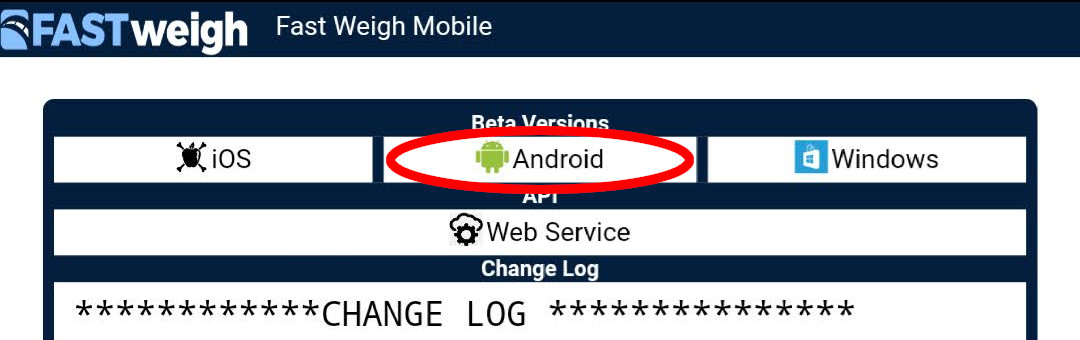 Once you access the beta download page, you will select the Fast Weigh Mobile app from the download list.
