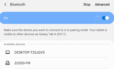 On the Bluetooth page, find and select your printer’s name.