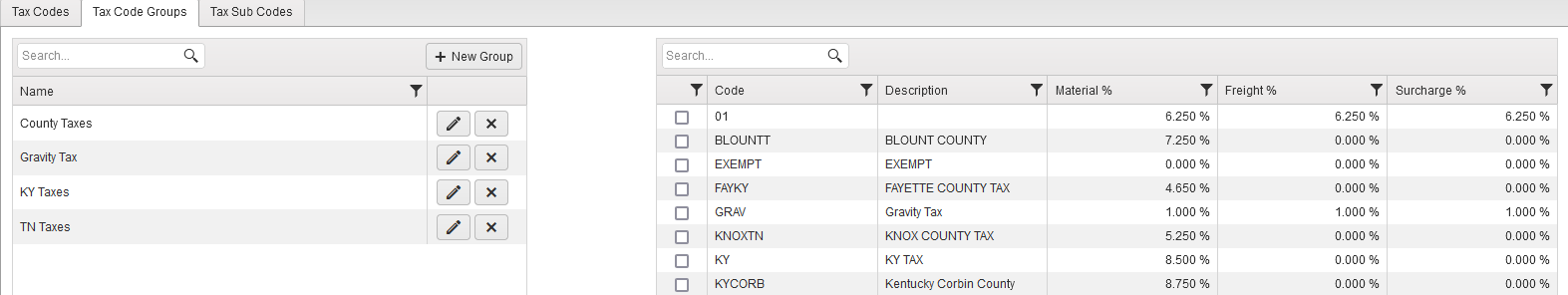 Clicking the **\[+New Group]** button will allow you to create a new group, which you will then select the desired tax codes to be contained in this group.